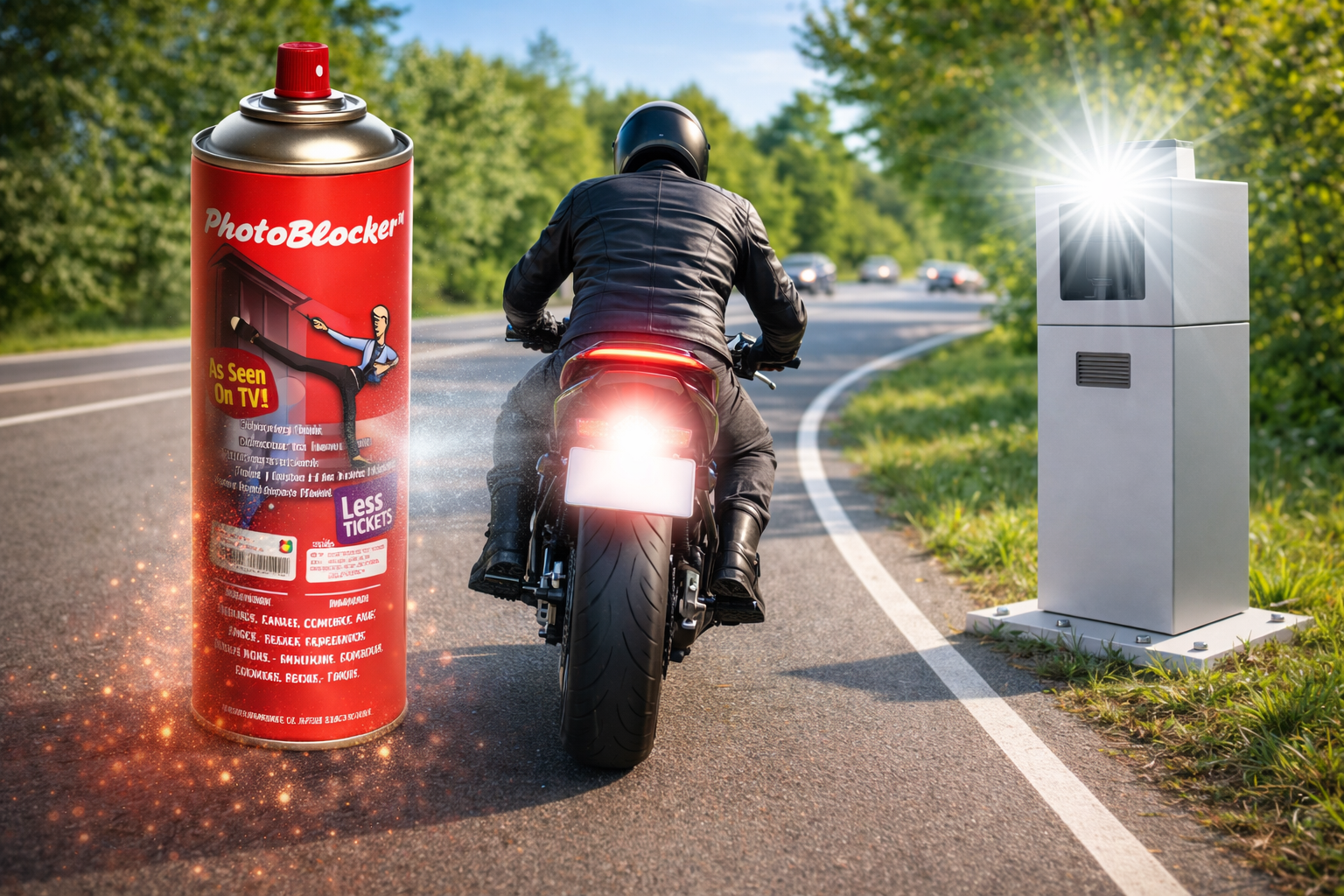 Buy PhotoBlocker 6oz Spray can. Remove your license plate from your vehicle. Clean and dry the surface. Lay it on a dry surface.